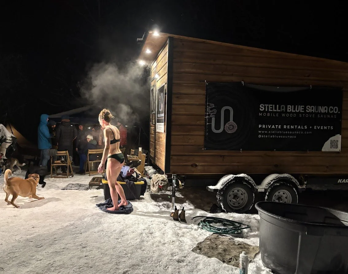 Our 8-person cedar, wood-fired sauna (built in cooling/changing room)